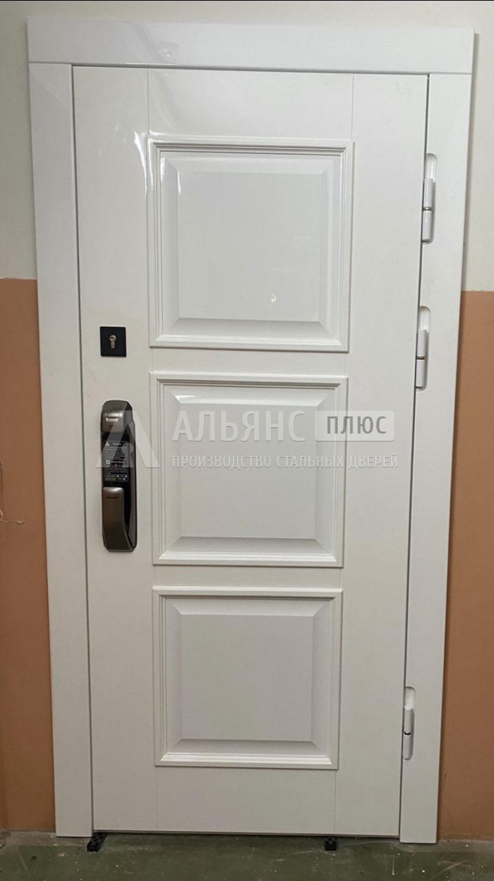 Можно, если это уличная конструкция: с терморазрывом, усиленным коробом, стойким покрытием (например, порошковая шагрень белый) и правильным монтажом. Такая белая стальная дверь выдерживает перепады температур, не промерзает по контуру и остаётся аккуратной даже при установке на фасад.